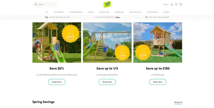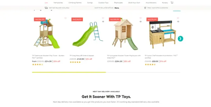 TP toys offer exclusive deals on a wide range of products such as swing frames, slides, and mud house kitchens for nurseries with top deals prices in which kids can enjoy high levels of energy through the natural atmosphere. It comes with one year warranty and next-day delivery on many products.