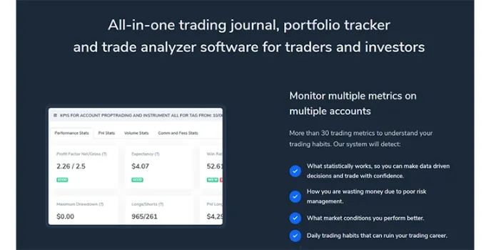 Trademetria is one of the best Trading Journals offering beautiful layouts, versatile usability features leading to monitoring your trade progress including, image attachments, filter, search, daily journal entries, individual trade, and auto-fills.