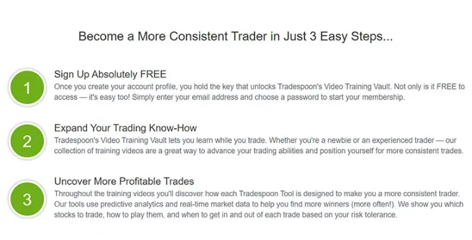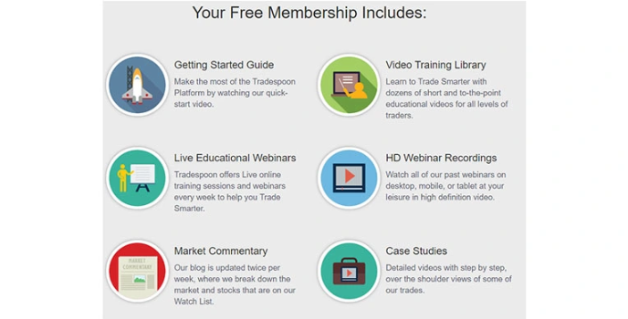 You can sign up to Tradespoon absolutely free. Once your profile is created, you can unlock the given training vault just by entering an email address and setting a password to start your membership. It helps you to learn while trading. These training videos help you to advance your trading abilities.