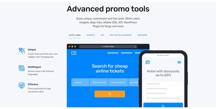 The TravelPayouts is Unique, allowing you to create and customize your widgets. They enable you to access tools in more than 60 different languages. These tools are perfect for high conversion rates.