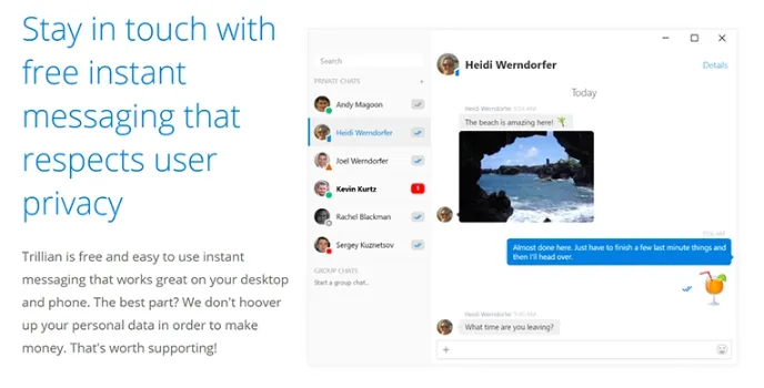 Trillian is a modern and secure IM platform that behaves like a driving force behind messaging innovation. It is a free instant messenger and a powerful business that is HIPAA compliant.