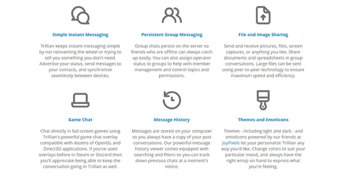 Apart from Trillian, there are various other IM platforms for users, such as Google Hangouts Chat, which makes for seamless communication, and Mobile Text Alerts, which lets users send unlimited messages.