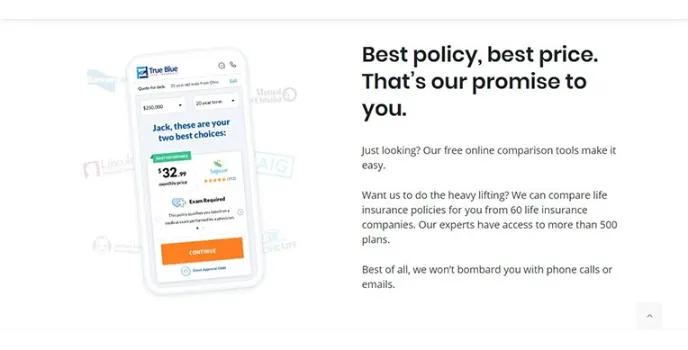 The users can compare in an online comparison meter given on the website. They can easily know more about plans and then avail themselves the policy from the company they think is the most lucrative as per their expectations. True Blue Life insurance company is a popular brand in the related field. They have amazing plans for the families that are easy to avail. The coverage is also impressive, and the claims can happen with promptness. Offerings accidental death benefits are the USP of the plans. The application process is easy and fast. The users also recommend the name of the company.