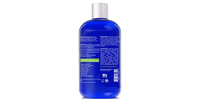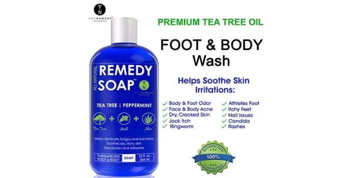 The True Remedy Liquid Soap is a best liquid soap used as remedy soap made with tea tree oil. This foot and wash liquid body wash helps in eliminating food and body odour and is used for soothing Athleteβs foot, toenails, candida, Ringworm, Jock Itch, Acne and other skin related irritations. This Remedy Soap comes with a great peppermint flavour and is balanced for all skin types, giving you a fresh tingling sensation. The unisex body wash is made up of organic and natural ingredients such as premium botanical tea tree oils, eucalyptus oils and peppermint oils, which are well known for handling skin irritations. It also comes with Jojoba, Coconut and Olive oil that helps in moisturizing the skin. It also helps to refresh and deodorize itchy smelly feet.