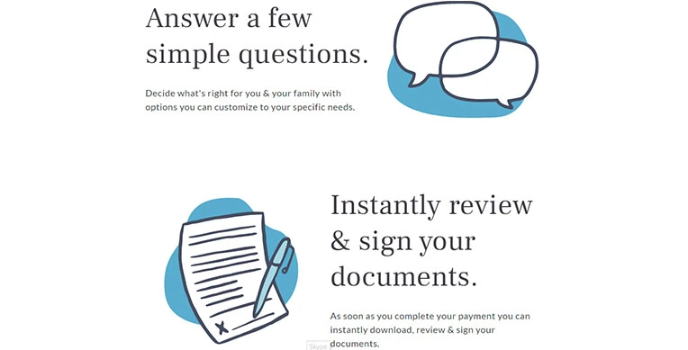 Trust & Will can be best suitable for users from small families for property or small estate registrations. The greatest advantage of this platform is that its documents and wills are reviewed by specially appointed estate experts and lawyers to make them right and legal. The plan is simple and straightforward; first, the visitors are asked a few questions about their requirements and then directed to create an estate plan. This is one of the fastest ways to prepare a will as it does not take more than 30 minutes to complete it.