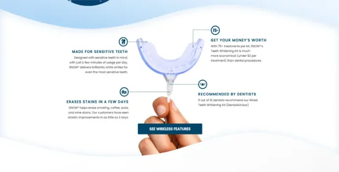 Tag Snow's LED teeth whitening kits use the latest LED technology to deliver powerful, long-lasting results. It is one of the best at-home teeth whitening systems, gentle on your teeth and gums, making it safe for everyday use. In addition, their best in-office teeth whitening systems come with a money-back satisfaction guarantee, so you can be sure that you're getting the best value for your money. Try Snow offers one of the best in-office teeth whitening kits that are clinically proven to be effective and safe.