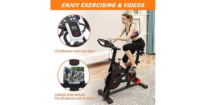 It is one of the best home exercise bikes; this indoor cycling bike provides stable and better customer satisfaction with an added support bar at the bottom, making it quite durable.