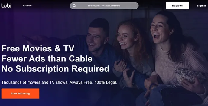As one of the best online video streaming websites, Tubi provides its service free of cost. It is available for free on Android, iOS, Apple TV, Firestick Amazon TV, PlayStation, Sony Smart TVs, etc. There is no subscription fee needed.