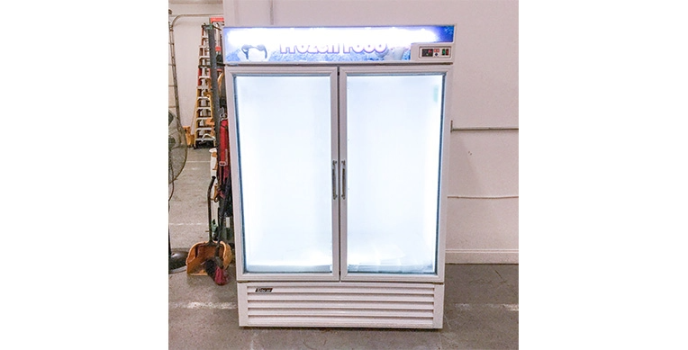 The glass door freezer has a large enough storage capacity to store a variety of frozen foods.