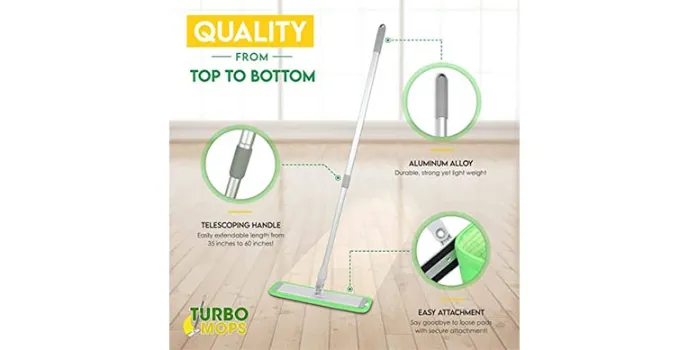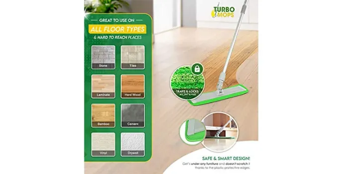 Comes with this durable handle for mopping and scrubbing hard floors in an easy way. This hard floor cleaner mop comes with premium pad traps that helps lock hard messes. It offers this extra length and lightweight microfiber cleaning mop that comes with hard aluminum alloy. The longer length handle with dry mode helps to dust, sweep, wet for mopping and also for scrubbing hardwood for the matter. The Turbo Multifiber hard floor cleaning mop includes two microfiber refills, 2 scrubbing pads and it works perfect for cleaning companies or for home use. There are other available products that make for efficient hard floor cleaner mops and come with different features and specifications. The Yocada Microfiber hard floor cleaner mop comes with this deep cleaning microfiber that helps remove and absorb tough grime and dirt effectively. The Venetio hard floor cleaner mop comes with an anti-slip grip and makes for this super lightweight mop. The Turbo Multifiber hard floor cleaning mop comes in the dimensions of 60 x 4 x 17 inches and weighs 1.2 pounds.
