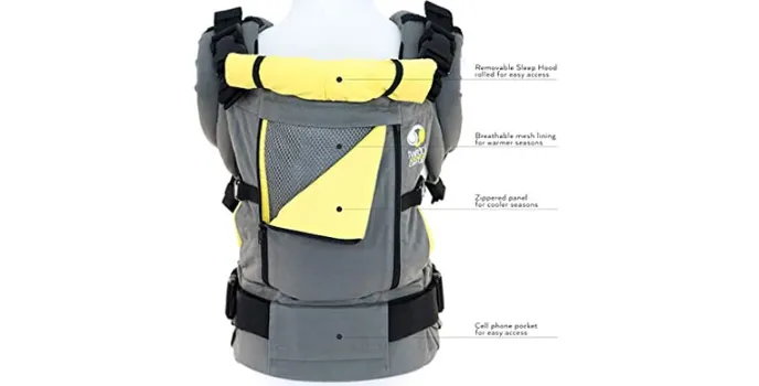 This product offers you a customized waistband with sizes ranging from small to extra large. This carrier will help your baby's hips in an open wide-legged position for development. It is a perfectly adjustable carrier that can adjust up to 8 positions. Also, it helps you and your babies feel comfortable always. It includes extra shoulder straps to convert this into two single-child carriers. Twin Go baby carrier provides a large pocketed diaper bag also.