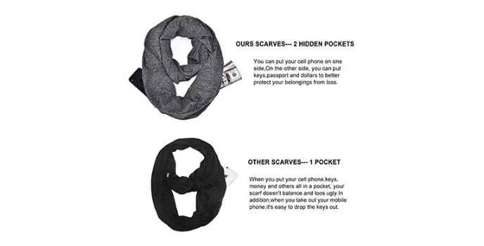 TwoYek Infinity - Best Hidden Zipper Scarfs for Women