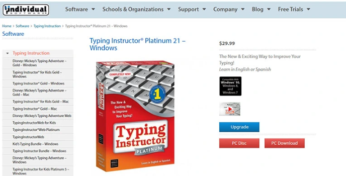 Typing Master is the easiest typing tutor software available today for anyone to quickly learn speed typing, 10-key, and touch typing. Learning to touch type and increasing your WPM is easy with lessons, drills, and games to test your skills. Similar products would include Mavis Beacon and Rata Type typing platforms.