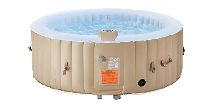 The U-Max hot tub is an inflatable hot tub that comes in a new design tub for up to 2-4 people and comes with a built-in complex water treatment and filtration system that makes water gentler on the skin for a soothing experience.
