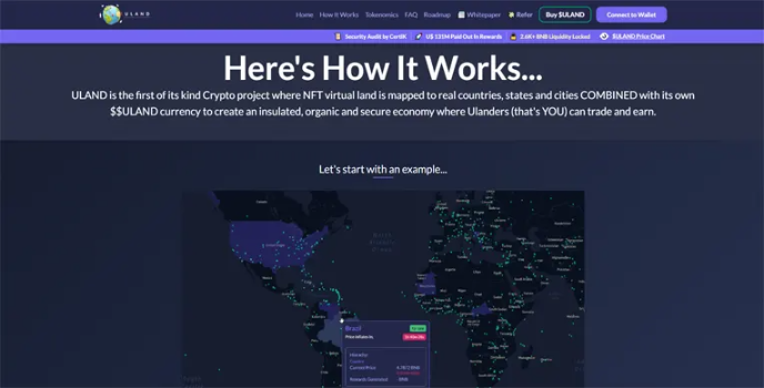 ULAND is, in simpler terms, a marketplace where you invest your crypto and get huge profits out of it while playing a game. This game is a virtual version of the real world, with every state, city, country, and region that exists in the real world is out for sale. You can purchase as many places as you wish out of the available ones and be the king, president, queen, or whatever you want to call yourself!