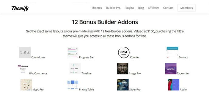 One of the key elements of this theme is that it offers as many as 12 bonus add-ons like woocommerce, pricing table, timeline, audio, and many more. That helps you to make your site better.