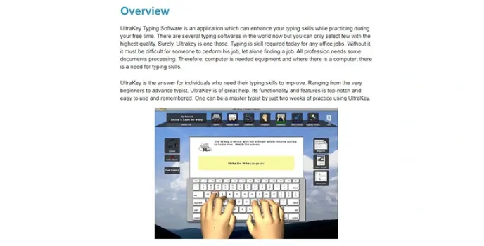 UltraKey is a high-quality online learning platform. It is a perfect solution for all individuals who need to improve their typing skills. Its level ranges from beginners to advanced typists.