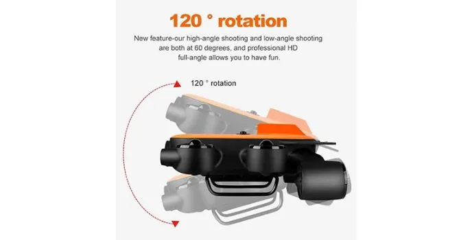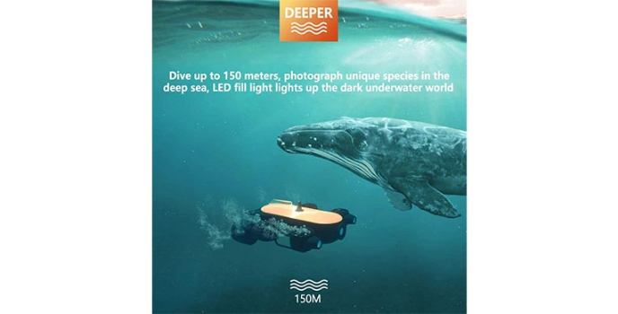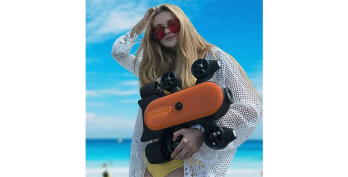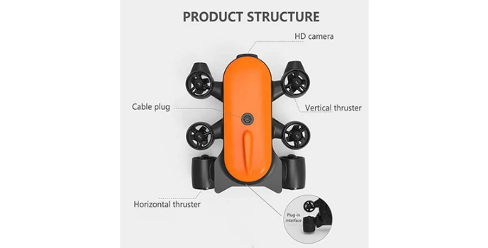 It has 5 thruster structure designs. It reduces volume by 65%, weight by 56%, making it simple for operating. It is the best drone for beginners. It has a 1080p full HD camera, F / L.6 aperture, high-definition, low chromatic aberration, and accurate production. It can dive 15 meters to take high-resolution photos and videos and take lifelike underwater pictures. It is adjustable within ±45° of the fuselage. One can see more and shoot more.
