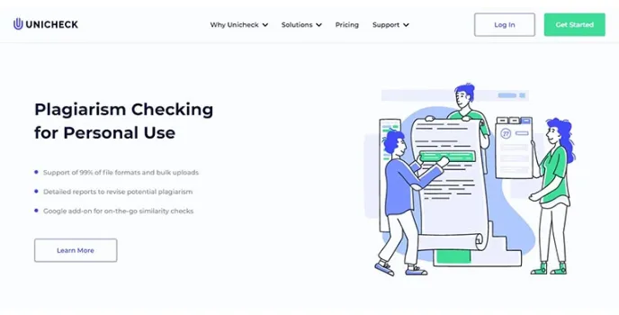 Unicheck is one of the best free Plagiarism tools for students and teachers for writing and grading essays, class assignments, and exam papers thoroughly without any errors or overlapping of sentences with already existing content on the web interface.