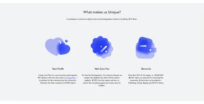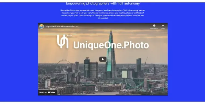 Unique One Photo is a next-generation decentralized NFT photography marketplace for the growing world of digital artists, collectors, and creators. Unique One Photo aims to hand autonomy and full commission back to photographers, removing the massive cut taken by traditional photography platforms. Photographers are rewarded for selling their work, not charged.