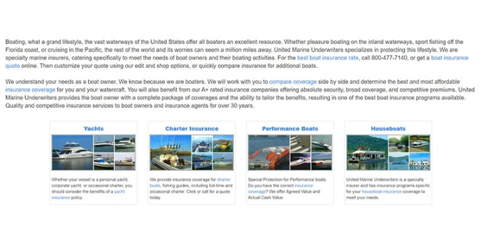 Another such platform is Travel Boat Insurance, where you get an A+ rated offering of absolute security, broad coverage, and competitive premiums. United Marine Underwriters offers you a complete package of coverage that has the ability to tailor the benefits, resulting in one of the best boat insurance services available.