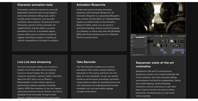 Create blueprint animation with customized character tools crafted with physics driven editing tools such as skeleton mesh, blend spaces, lightning, camera blocking, and other dressing elements for quality performance. Artificial intelligence techniques and robust framework often battle-tested and designer-friendly equipment that permits to build content for streamlined workflow rapidly.