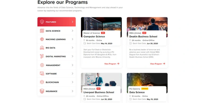 These platforms have a tie-up with top University Partners, thereby providing optimal educational resources. They offer cost-free 1-on-1 Career Guidance, and you can even procure Upstart priceless learning. The course offered includes PGDM from Birla Institute of Management Technology, five New MBA courses with new specifications, Data Science, Analytics, and many more.