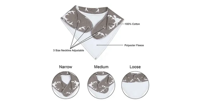 These Bibs come in a three-size adjustable bandana bib, which is fit for 3 to 24-month babies and comes with two sets of fastening adjustable nickel-free snaps, which is also appropriate for sensitive baby skins. You can easily adjust the bib according to the size of your baby's neckline and the baby's growth. You can find these bibs in the best gifts for newborn babies.