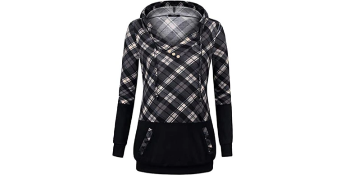 It is a Lightweight plaid Hoodie with a color Block Hooded Sweatshirt and Kangaroo pockets. This is a single fashion hoodie that certainly lets you pop out. Perfect for indoors and outdoors, it will range from casual to dressy.