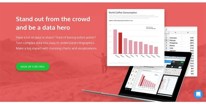 Venngage is a perfect infographic maker for presentation infographic templates and image editing. It helps to design infographic templates professionally and has 24 by seven customer support to guide when one gets stuck. Using this photo editor software, one can create timelines, process infographics, reports, logos, brochures, resumes, mind maps, social media posts, proposals, road maps, flyers, banners, card invitations, newsletters, and many more.
