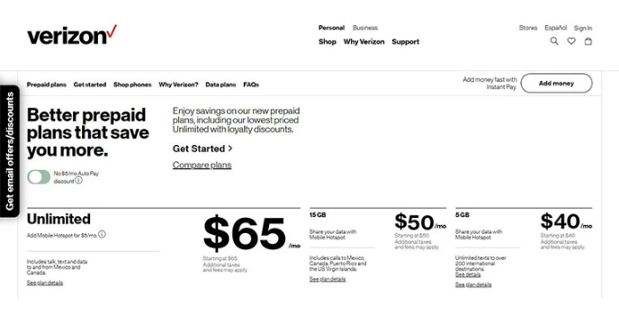 Verizon prepaid plans also cover the basics. For example, you can talk, text, and use data in other countries with this unlimited plan. But customers have to purchase a different list. Meanwhile, customers need to add $5 extra for a mobile hotspot with an unlimited plan.