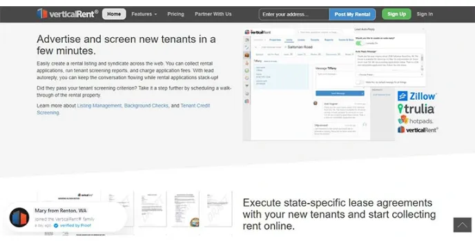 The product offers a wealth-creating facility with VerticalRent's streaming service and a vacancy for advertising that gives an online payment. It also allows the current background check service for landlords that performs its duties in tenant credit X with free background checks and some of the missing management with parents online. The tenants can be there and online, making it more convenient for them to get the service.