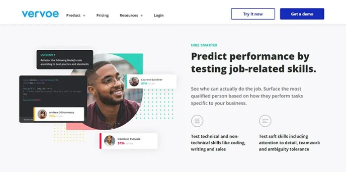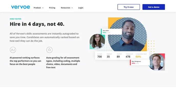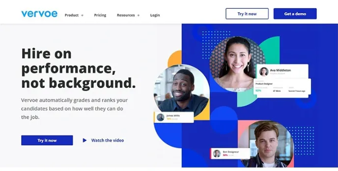 Vervoe substitutes conventional work with credentials and offers all candidates the ability to exhibit their abilities by activities relevant to their careers. Machines learn models then identify candidates automatically based on their performance over video conferencing.