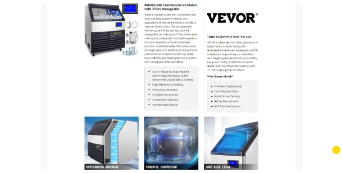 Vevor is a brand that offers ultimate ice-making machines and Ice cream making machines. It suits best for commercial use and normal use to each and every user. The Vevorβs commercial ice cream making machine and ice maker is equipped with a premium water filter and makes for crystal clear and hard ice cubes that come out in the standard size, cloudless and chewable.