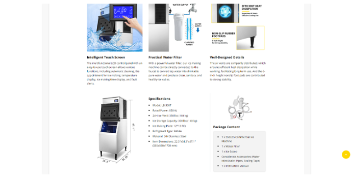 The Vevor Icemaker is made with stainless steel material and comes with a polished surface. It comes with an anti-oxygen and fouling layer and a powerful compressor. It can easily be operated with an LCD digital panel and is best for use in shops and hotels. All the products of Vevor from commercial ice cream making machines to commercial ice makers are durable for a very long to