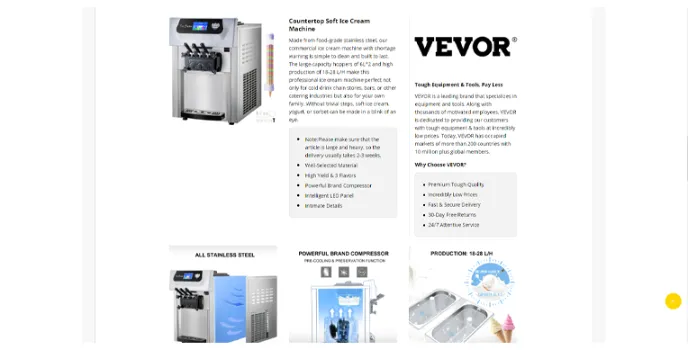 After a hearty meal at a restaurant, who wouldn't want some sweet ice cream or sundaes? They use ice cream makers to attract customers with their various flavors of ice cream. The Vevor commercial ice cream makers are equipped with powerful features that make the work look professional and avoid taking long periods.