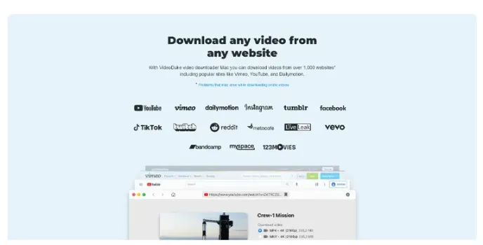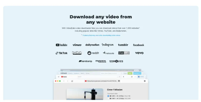 VideoDuke is an online Mac video downloader. With this software, you can easily download videos on Mac from the most popular video-sharing websites like YouTube, Facebook, Instagram, TikTok, and more.