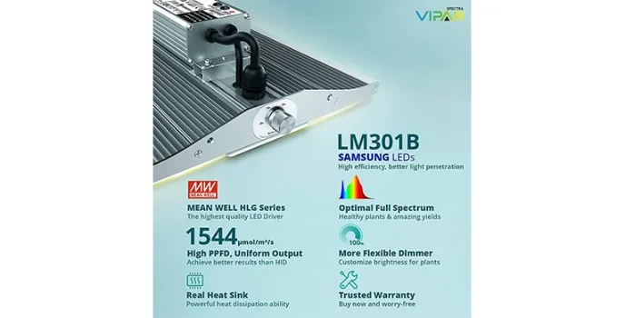 ViparSpectra is one of the best LED grow lights available on the internet. The product comes with the best cooling system. The products are equipped with a delicate and finely designed heat sink. The extended area of the lights offers better heat dissipation and ensures the productβs long life span.