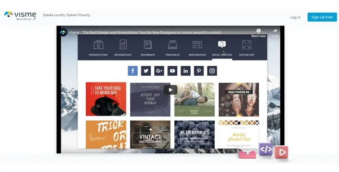 Visme is a template-based, all-in-one visual content presentation creation tool that provides various designs ranging from online presentations to documents like posters, brochures, business cards, etc. It helps provide business services through engaging creations.