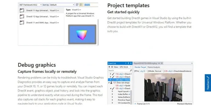 Let you make highly preferred and quality gameplay to all game lovers. The game development equipment has predefined unique templates for window platforms, where you can get unique templates to add in projects smoothly, with this software troubleshooting essentials to scan remote and local frame analysis that includes pixel history, graphic objects, and graphics pipelines to examine problems for an excellent performance.