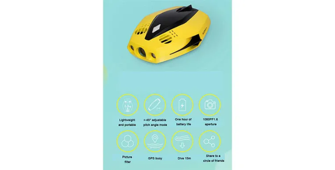 The body of the undersea drones has an exterior interface, which can be fitted with a sports camera, etc., to seize the wonderful moments of underwater glamorous images and apprehend the underwater world.
