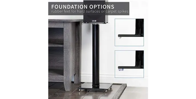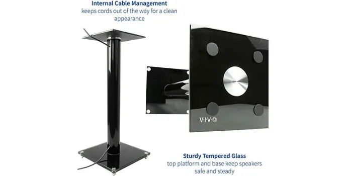 VIVO Luxury universal aluminum and glass speaker stand (two stands) for satellite speakers, book stand speakers. They are crafted to improve your speakers and audio sound. The stylish yet attractive look of STAND-SP02B is ideal for any home theatre setup, which gives thoughtfulness and imagination that gives a studio-like feel.