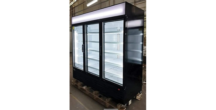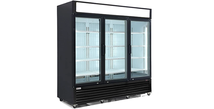 It has three glass doors that display your food items. These glass doors possess heated frames, and they are self-closing doors. It is one of the best three-door commercial freezers.