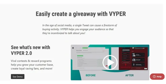 If you are looking for the perfect viral marketing tool for your business, then Vyper offers the ability to create giveaways and engage your audiences constantly and effectively. It lets you interact with your audiences to be interested in talking and engaging with you constantly.