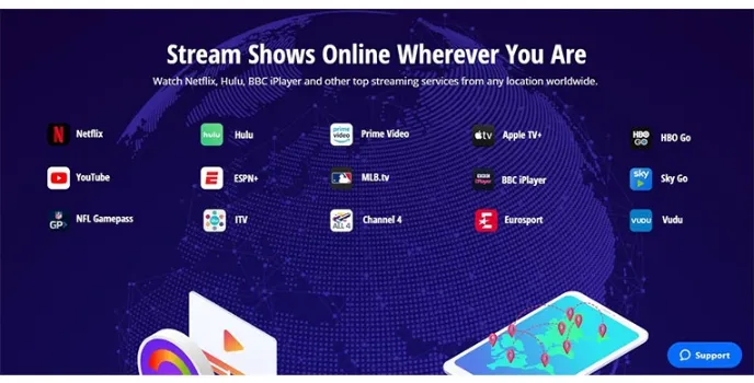 - Reliable VPN connection for quick streaming