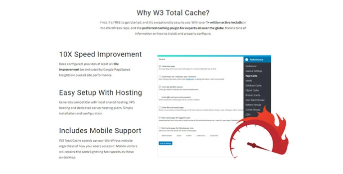 Once the W3 Total Cache Wordpress Cache Plugin installed in the devices, soon itβs configuration provides the site's blazing fast 10x speed improvement to give an overall performance.