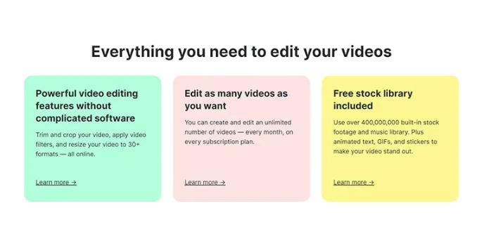 - Delivers built-in-stock footage and music library