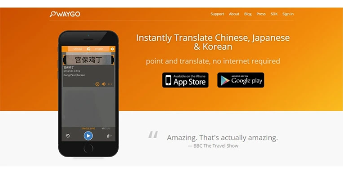 Waygo is also a type of offline translation app that can translate from text and image sources and documents. It is the best translation app for travelers from China, Korea & Japan.