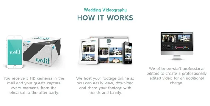Wedit provides you extensive wedding features. They also offer video editing services. You can also order rental cameras to record for your wedding. Wedit comes in flexible pricing that you have to pay in the first place. You can also use the best free video editing software like a youtube movie maker.