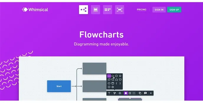 The softwares like flowchart makers help create flowcharts, wireframes, sticky notes, and mind maps in very little time. Whimsical tools are user-friendly and help make the most elaborate designs and projects with little formatting work. You donโt have to panic about design and can focus on content. It has a large number of pre-designed templates with the latest designs to meet the market needs.